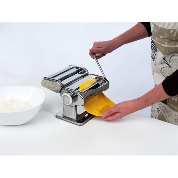 Laica PM2000 е ръчна машина за прясна паста с корпус от неръждаема стомана и сменяеми алуминиеви приставки. Тя предлага 7 степени за разточване и възможност за приготвяне на лазаня, талиатели и фетучини у дома.