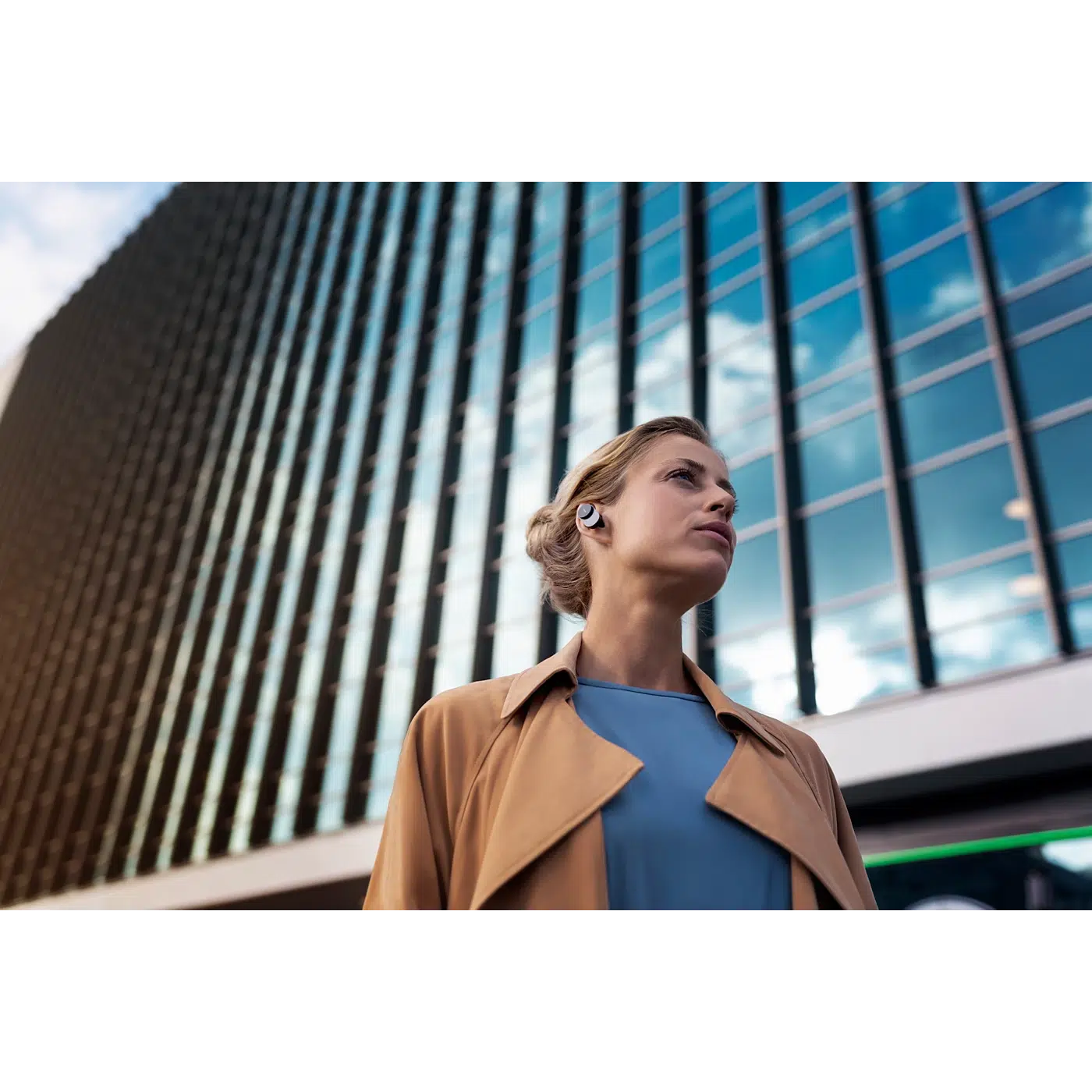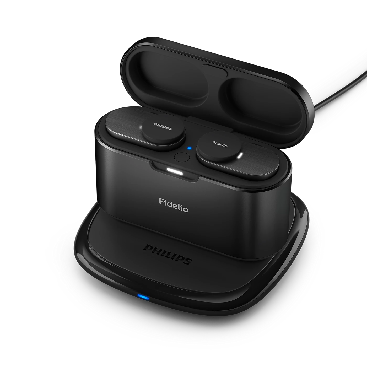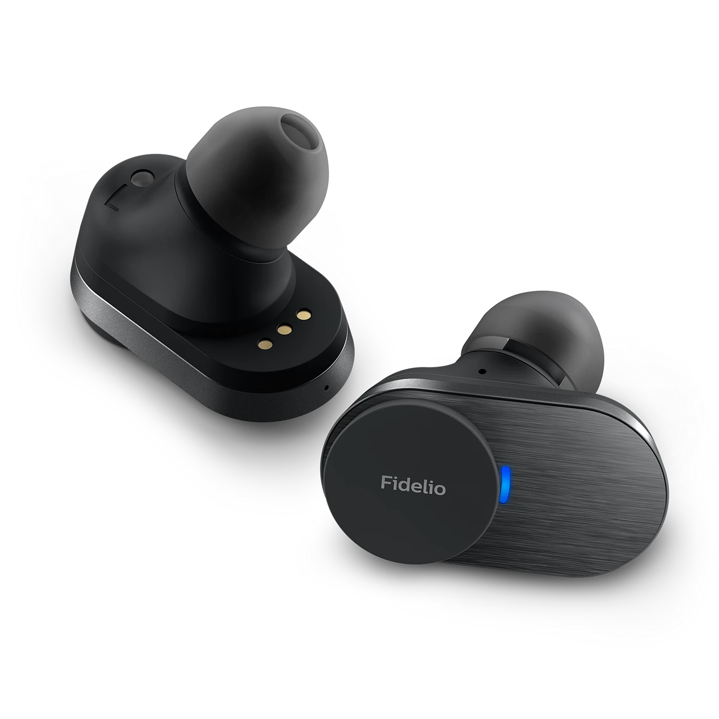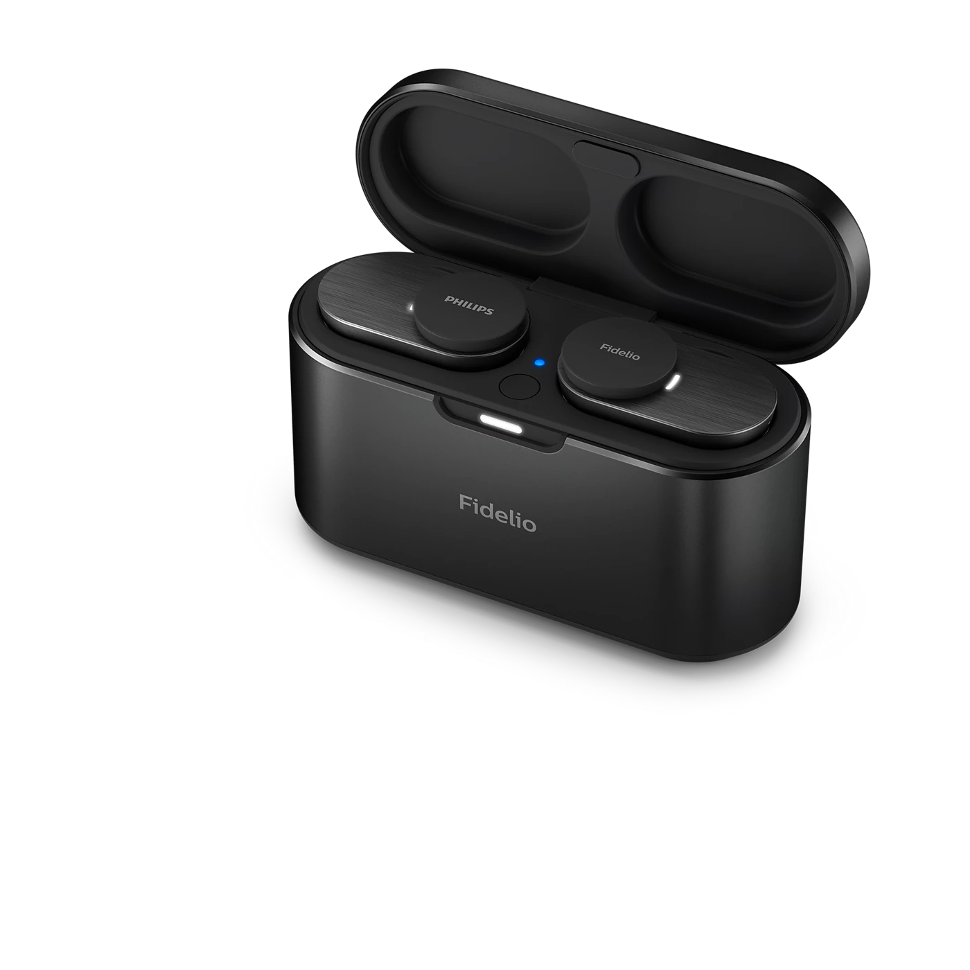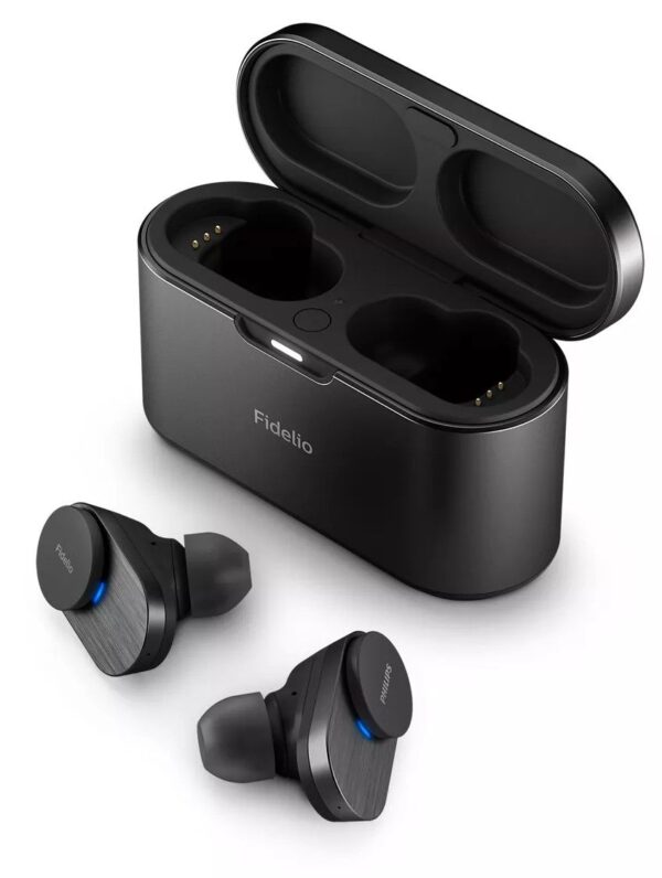 Дизайнът на Philips Fidelio T1 съчетава елегантност и практичност. Микрокапсулите са с полирани метални елементи, а стилният кожен акцент върху металния калъф придава премиум усещане. Всеки детайл е замислен да допълни музиката със същото внимание към качеството.