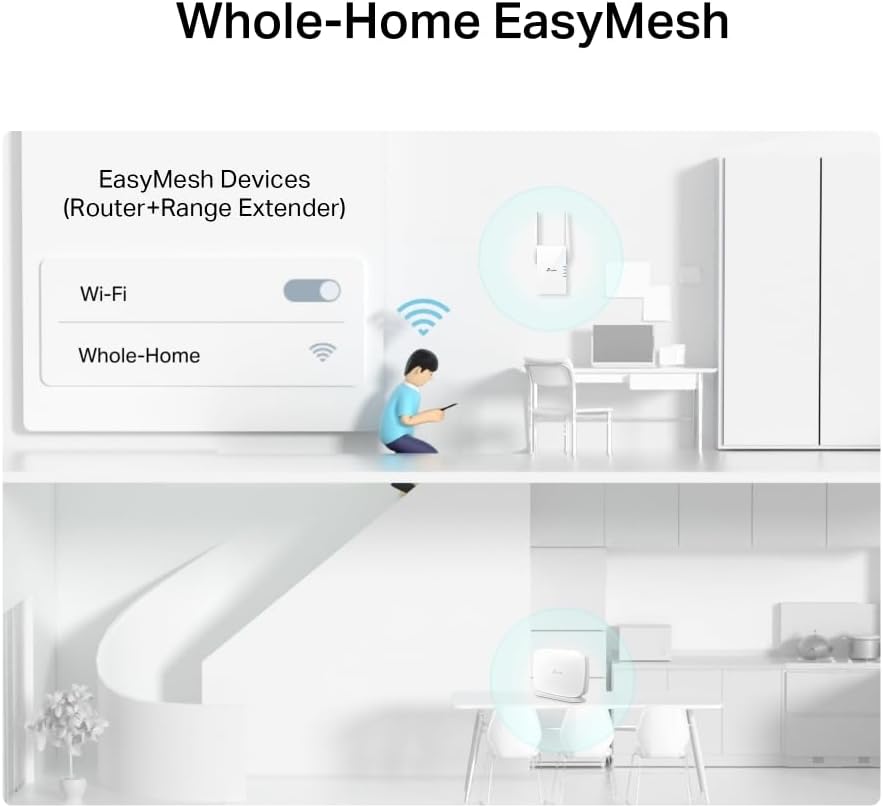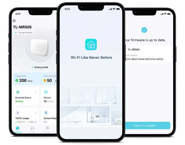 Archer MR505 е съвместим с EasyMesh, което позволява създаване на безпроблемно WiFi покритие в целия дом. Устройството елиминира мъртвите зони, осигурява безпроблемно прехвърляне между мрежите и работи под едно WiFi име.
