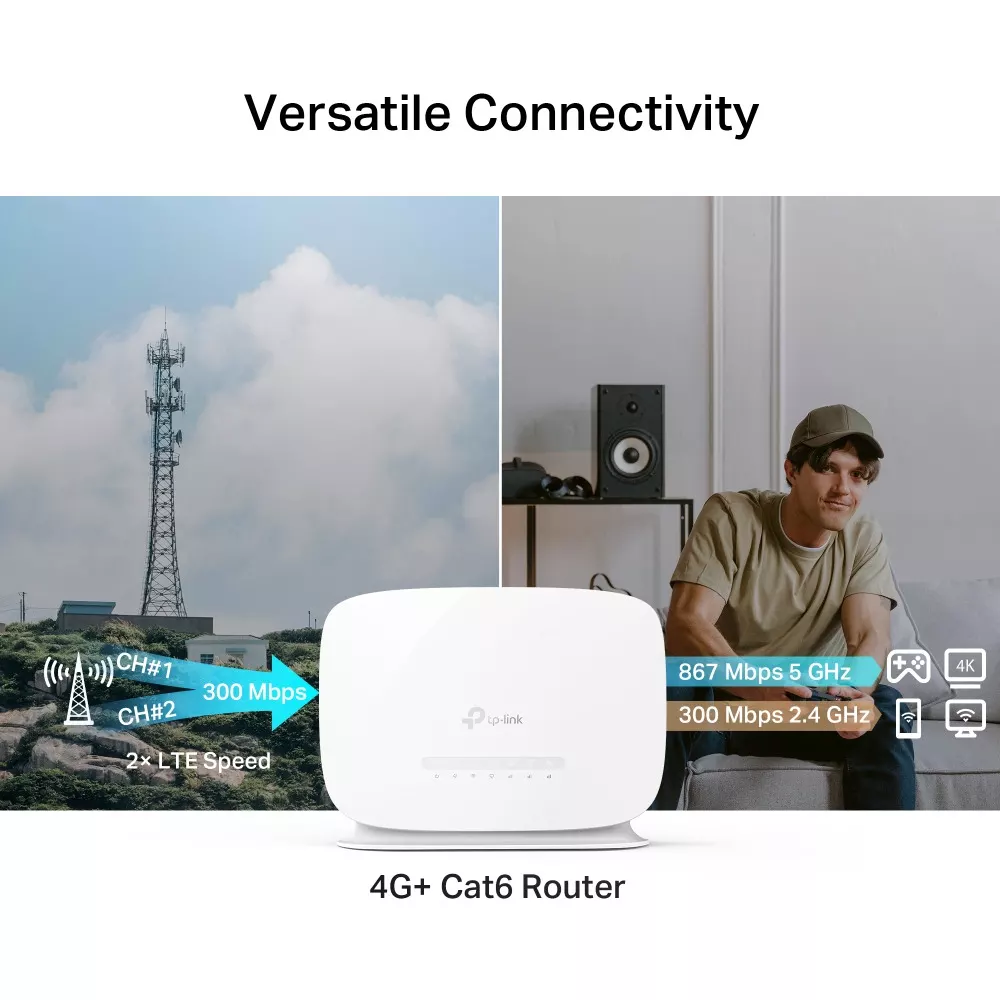 TP-Link Archer MR505 е 4G+ рутер от ново поколение, който осигурява мобилен интернет със скорости до 300 Mbps благодарение на Carrier Aggregation технология. Просто поставяте SIM карта и веднага получавате стабилна и бърза интернет връзка, без нужда от сложна инсталация или допълнителни настройки.