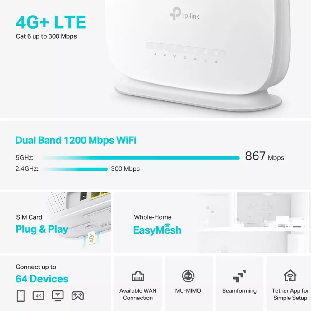 С поддръжка на MU-MIMO и Beamforming, рутерът разпределя сигнала ефективно към до 64 свързани устройства едновременно. Двуканалната Wi-Fi мрежа осигурява 867 Mbps на 5 GHz за видео и игри, както и 300 Mbps на 2.4 GHz за сърфиране и социални мрежи.