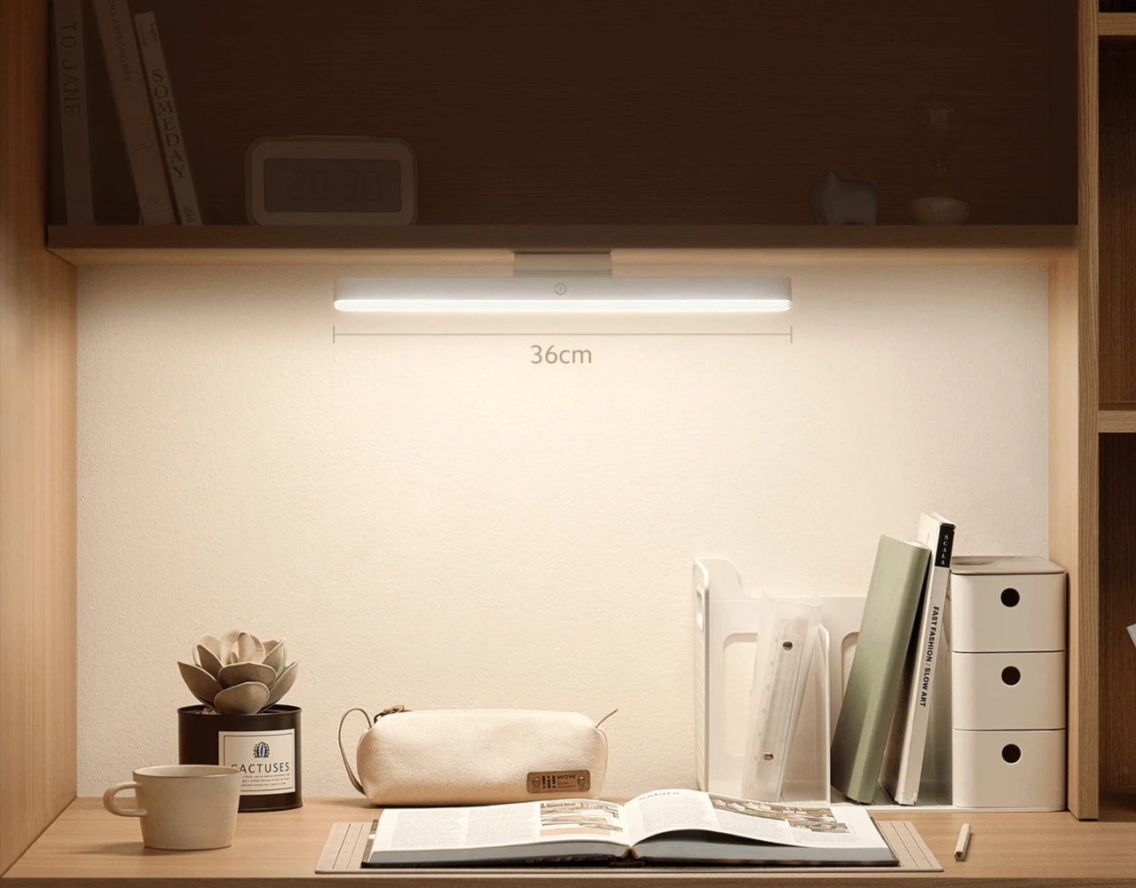 36-сантиметровата удължена лампa с интензивност 150 lm осигурява равномерно осветяване на цялото бюро, подобрявайки видимостта. Специално проектираните оптични лещи намаляват отблясъците чрез многократни пречупвания, осигурявайки по-меко и естествено осветление. -