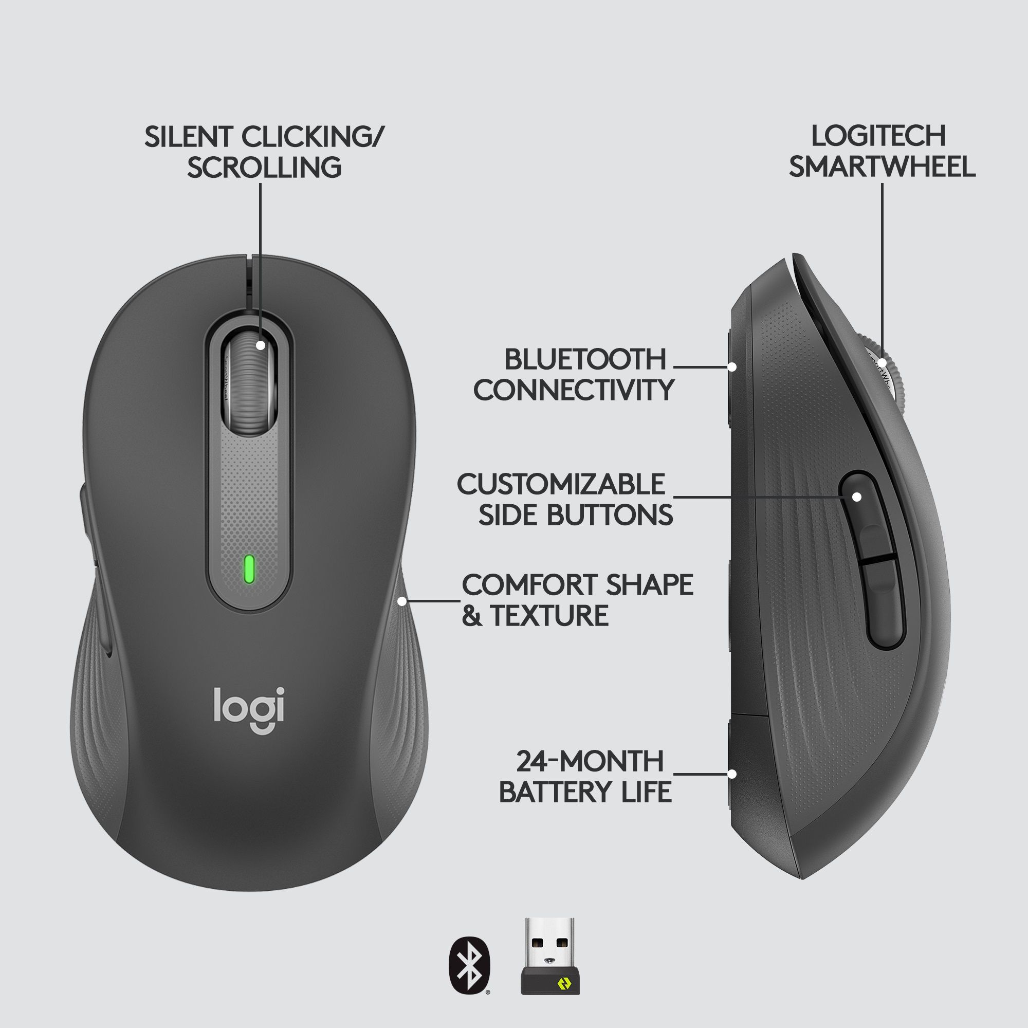 Signature M650 е проектирана така, че да пасне на всеки потребител. Моделът се предлага в няколко размера – M650 за малки до средни ръце, M650 L за по-големи и M650 L Left за хора, които използват лявата ръка. Така се гарантира максимален комфорт и естествена позиция по време на работа.