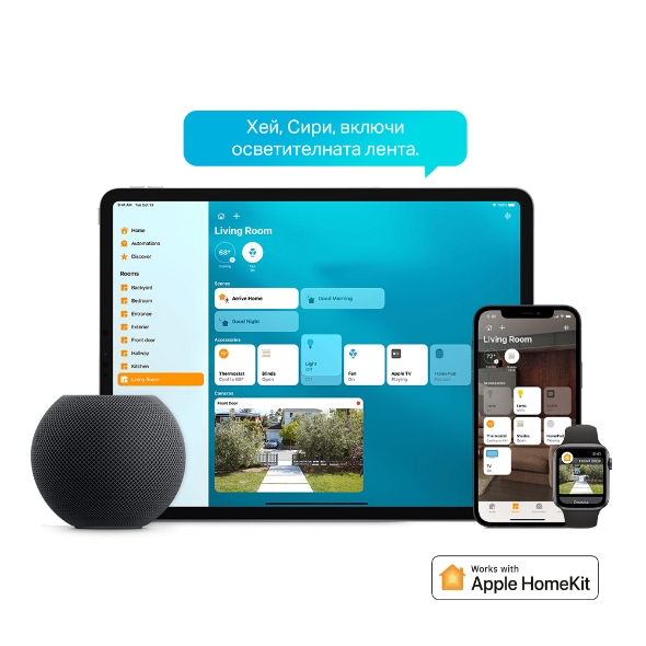 Функцията Music Sync превръща светлината в част от звуковото изживяване, като тя реагира в реално време на ритъма на музиката. Управлението става лесно с помощта на гласови асистенти като Alexa, Google Assistant и Siri чрез Apple HomeKit.
