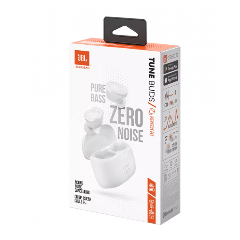 JBL Tune Buds осигуряват до 48 часа JBL Pure Bass Sound с ергономичен, водо- и прахоустойчив дизайн за целодневен комфорт.