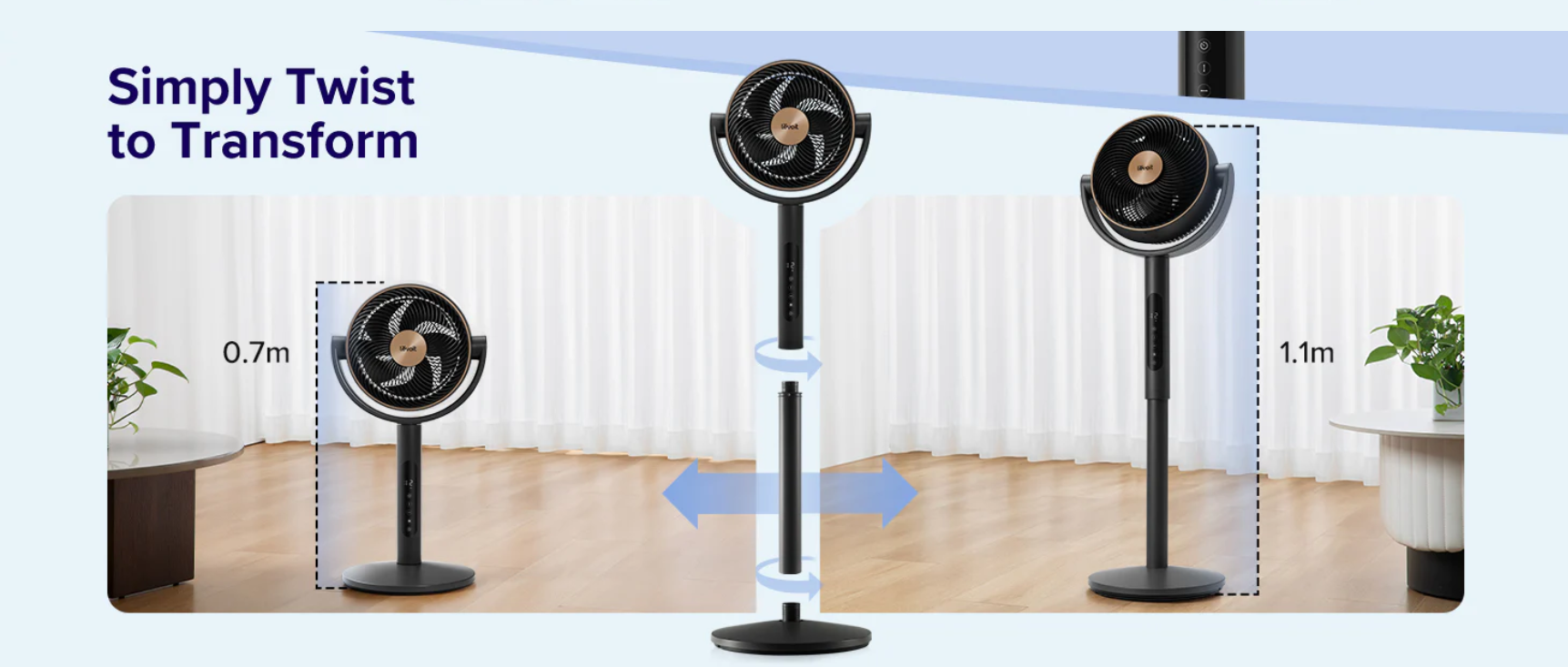 С иновативната Tri-Cyclonic технология, вентилаторът достига скорост на въздуха до 7.5 метра в секунда и обхваща до 30 метра. Това го прави идеален за охлаждане на просторни помещения и гарантира равномерно разпределение на въздуха във всяка част от дома.