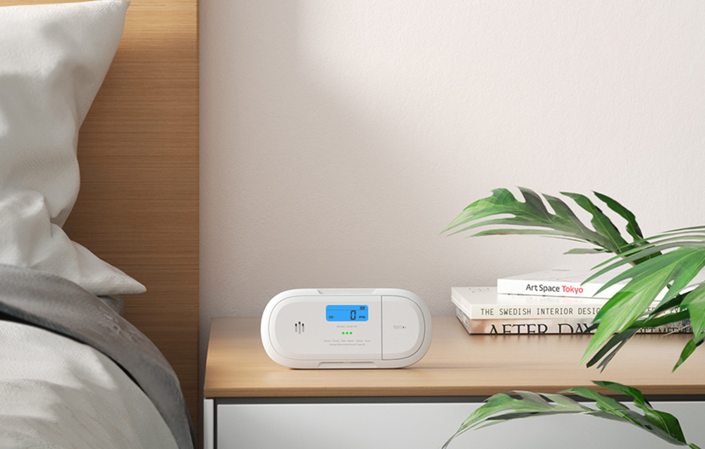 Устройството може да бъде поставено както на стена, така и на плоска повърхност, което го прави подходящо за различни интериори. Яркият LCD дисплей и цветни LED индикатори (зелен, жълт, червен) предоставят моментална информация за текущото състояние на устройството, нивото на въглероден оксид и състоянието на батерията.