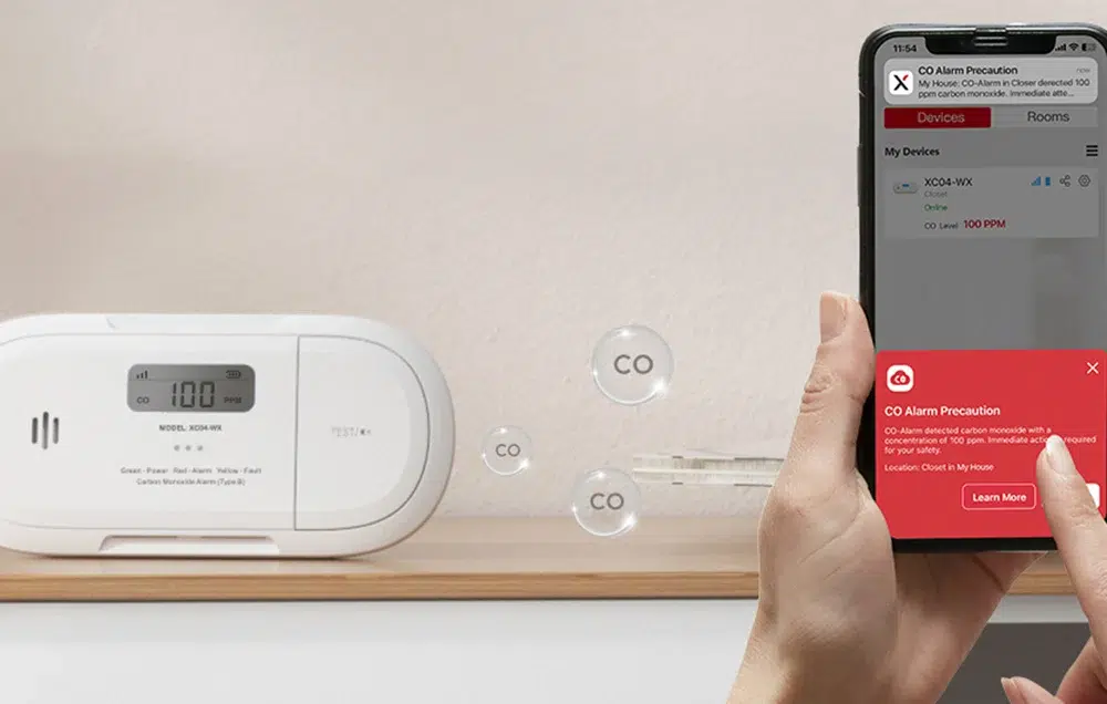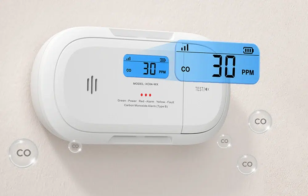 Сензорът XC04-WX улавя концентрации на CO в диапазона от 30 до 999 ppm, като времето за задействане варира според нивото на газа – от 120 минути при 30 ppm до само 3 минути при 300 ppm. Алармата със сила ≥ 85 dB осигурява навременно и ясно предупреждение, което достига до всички помещения в дома.