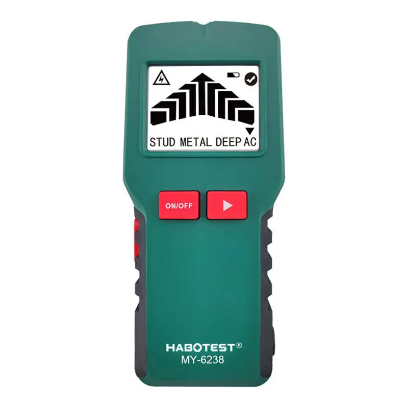 Habotest MY6238 е многофункционален детектор 4 в 1, създаден да открива обекти, скрити зад стени, подове и тавани. С него можете да работите по монтажи, ремонти и пробиване по-сигурно, без риск да засегнете електрически кабели или конструкции.