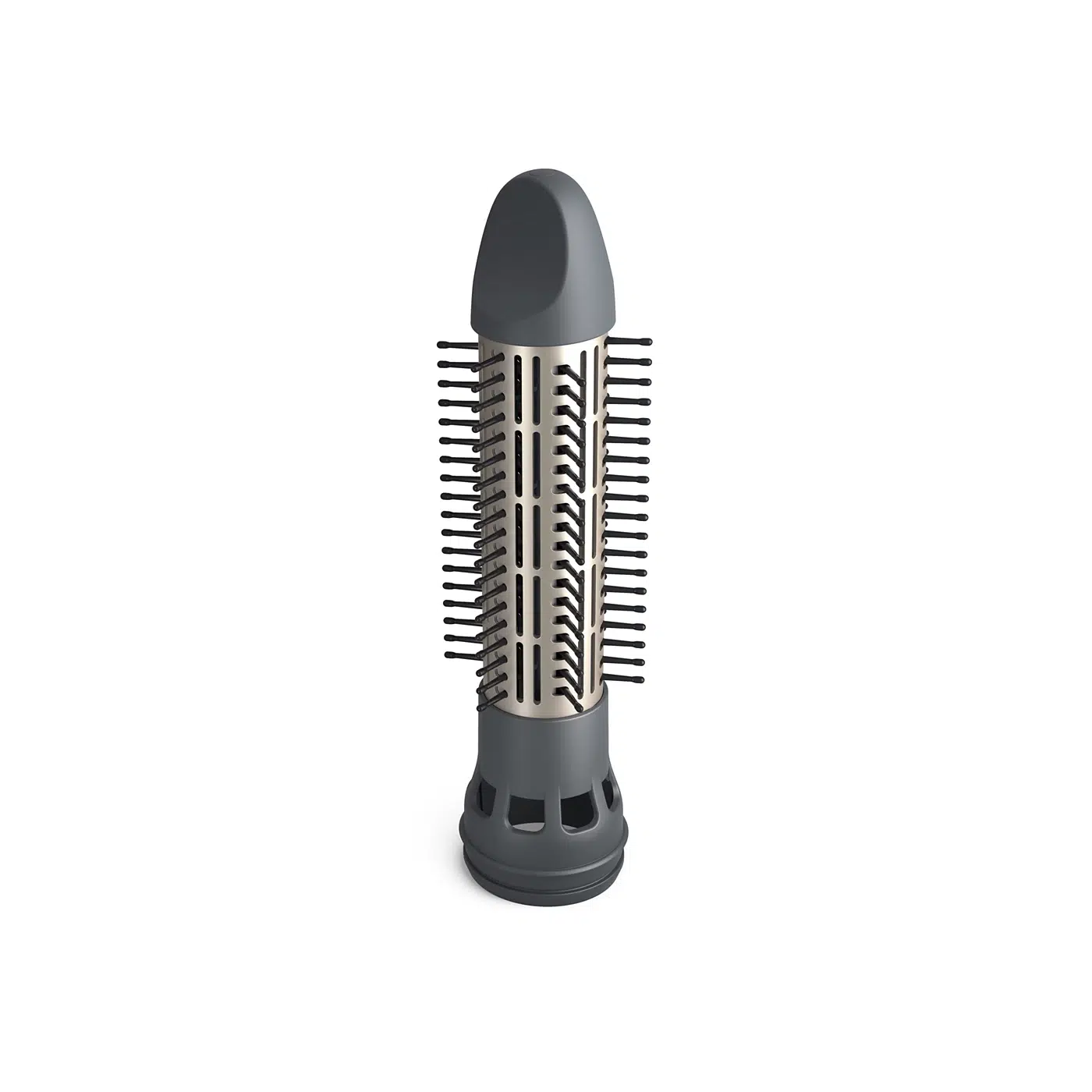 Включените 50 мм и 30 мм четки се въртят и в двете посоки, което ви дава свободата да оформяте както прави, така и вълнообразни прически. Голямата четка от естествена четина на глиган изглажда и добавя обем, докато прибиращата се 30 мм четка позволява оформяне без заплитане.