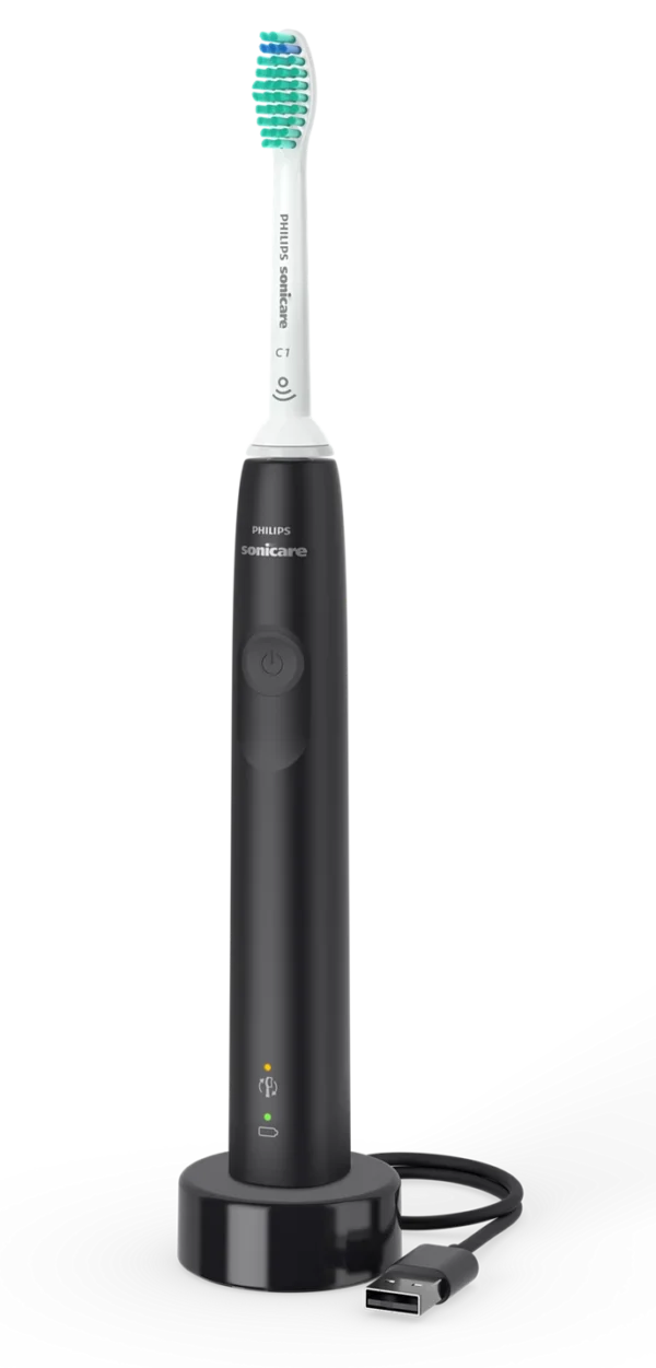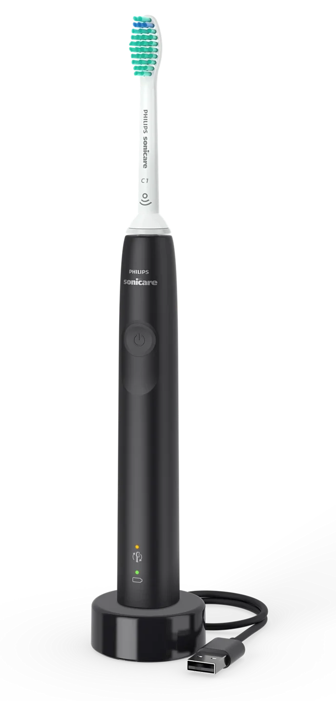 Електрическата четка Philips Sonicare 3100 Series използва усъвършенствана звукова технология, която осигурява до 3 пъти по-ефективно премахване на плаката в сравнение с ръчна четка за зъби. Високочестотните вибрации почистват както повърхността на зъбите, така и труднодостъпните зони по линията на венците, като същевременно поддържат деликатна грижа към меките тъкани.
