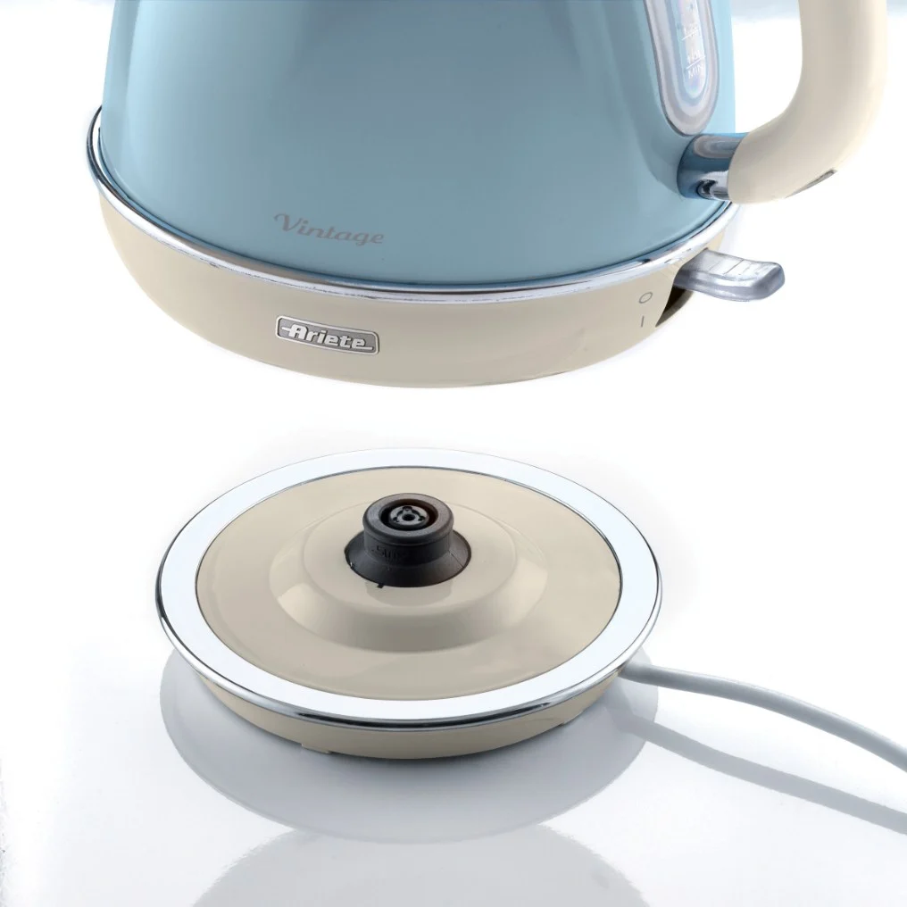 Тази електрическа кана е част от серията Vintage на Ariete, която се отличава с класическа визия и нежни пастелни тонове. Моделът се комбинира лесно с останалите уреди от колекцията и е чудесен избор за всеки, който иска да съчетае функционалност, компактност и стил в едно устройство.