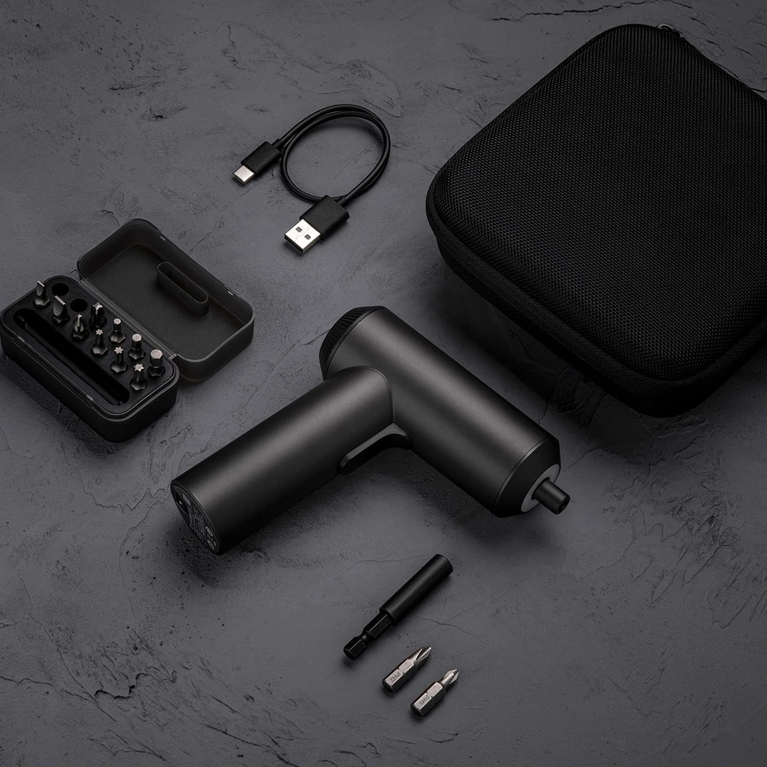 Отвертката се захранва от 2000 mAh батерия, която се зарежда напълно за 120–180 минути чрез USB-C порт. В комплекта ще откриете 12 бита, удължител и твърд калъф с цип за съхранение и лесен транспорт. Битовете са изработени от устойчива S2 стомана с твърдост HRC60, което гарантира дълъг живот и висока надеждност при работа.