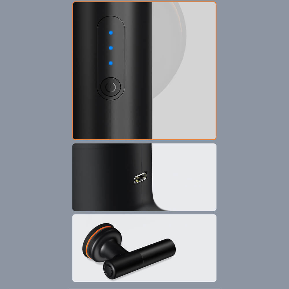 Полиращият шлайф се зарежда чрез USB-C порт, което осигурява бързо и лесно захранване. Включените различни видове полиращи гъби позволяват обработка на повърхности с различна структура и степен на замърсяване.