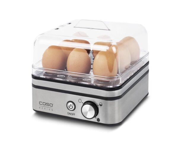 Електрическият яйцевар CASO E9 е създаден за удобна употреба в домашни условия. Корпусът от неръждаема стомана и прозрачният капак придават стилен и модерен вид, а компактните размери позволяват лесно съхранение.