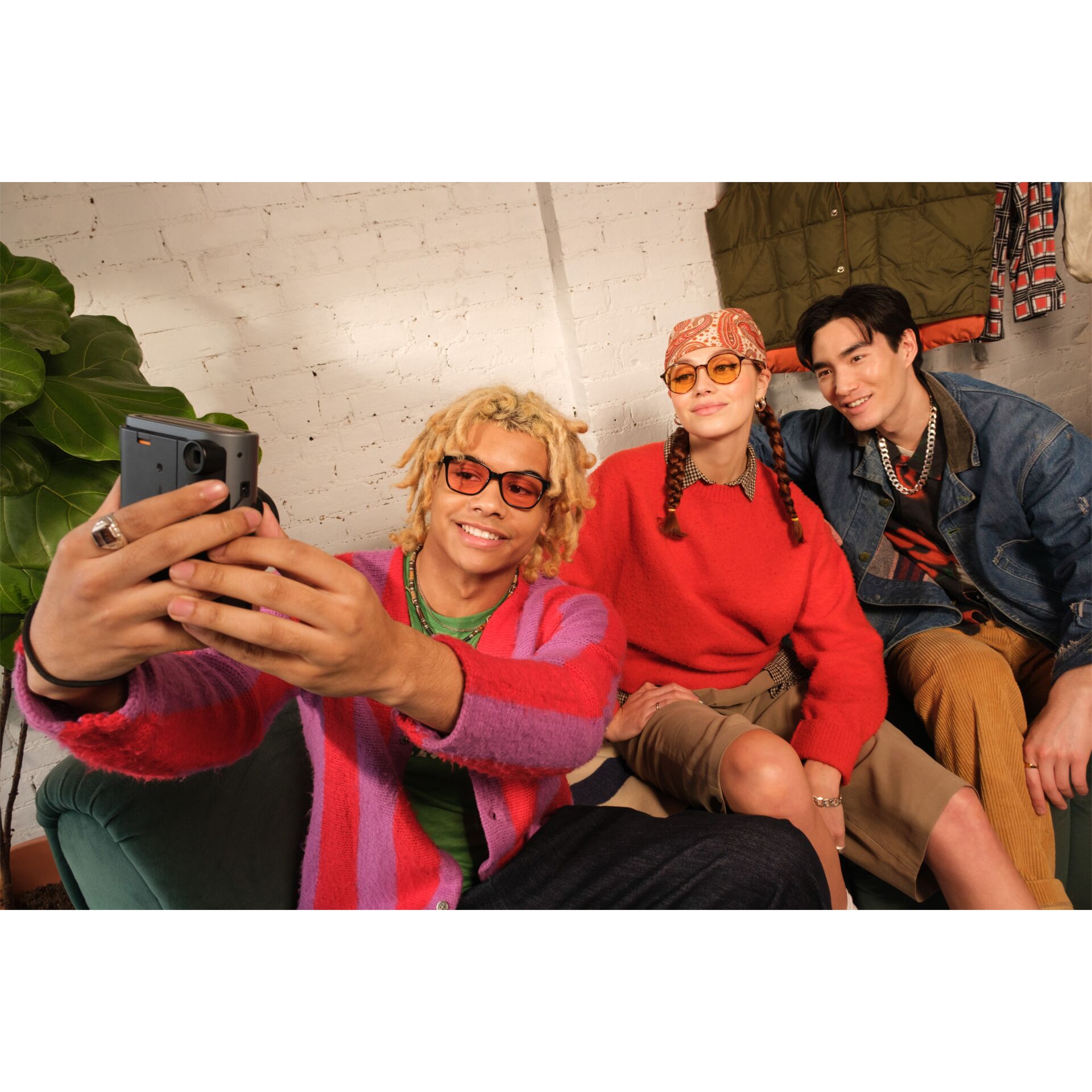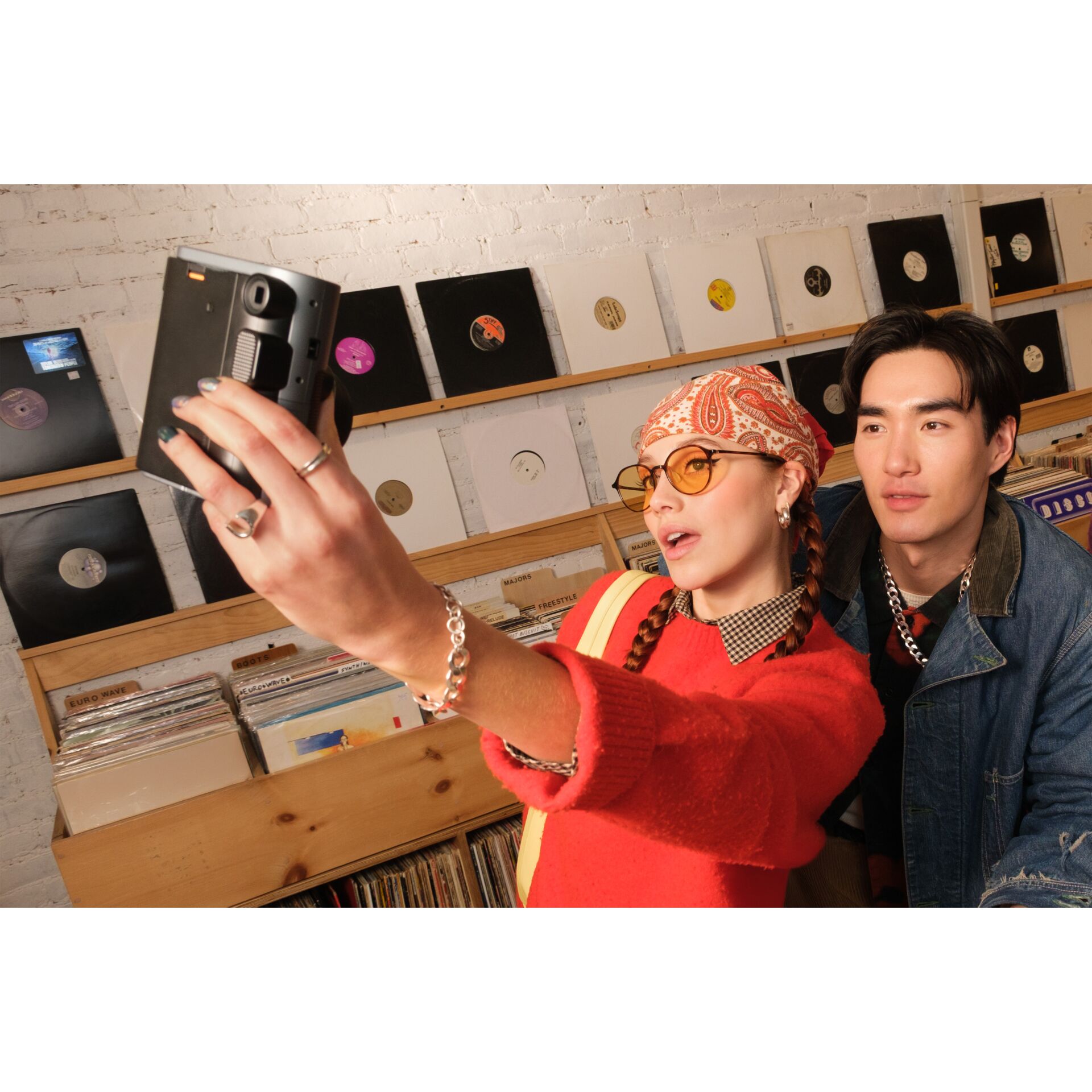Вграденото огледало за селфита улеснява кадрирането, а режимът за близък план с корекция на паралакса гарантира, че това, което виждате, ще се появи и на снимката. Автоматичното управление на експозицията и светкавицата осигурява правилно осветени кадри при различни условия, без нужда от ръчни настройки.