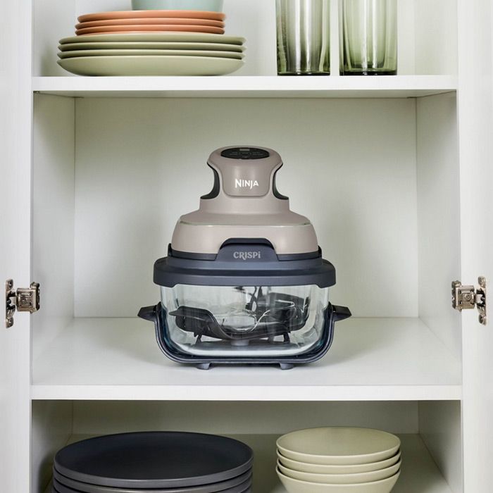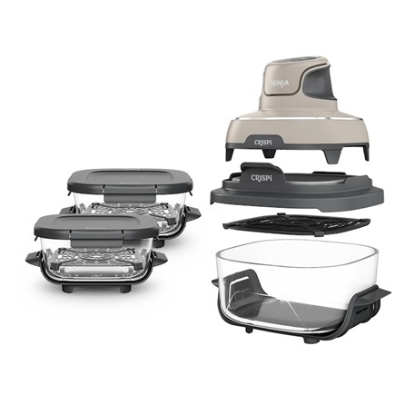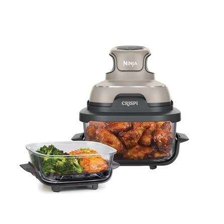 Ninja CRISPi предлага два контейнера – 3,8 л за семейни порции и 1,4 л за индивидуални ястия. Уредът автоматично разпознава използвания съд и настройва температурата спрямо него. Идеален е за ежедневна употреба, закуски или приготвяне на храна за пътуване.