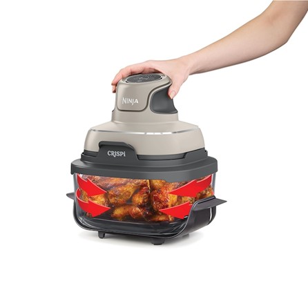 Ninja CRISPi е компактен и мощен фритюрник с горещ въздух, съставен от две основни части – лек 1700W PowerPod и термоустойчиви стъклени съдове. Уредът предлага четири функции за готвене – пържене, запичане, поддържане на топлина и хрупкавост, като същевременно спестява до 50% енергия в сравнение с традиционна фурна.