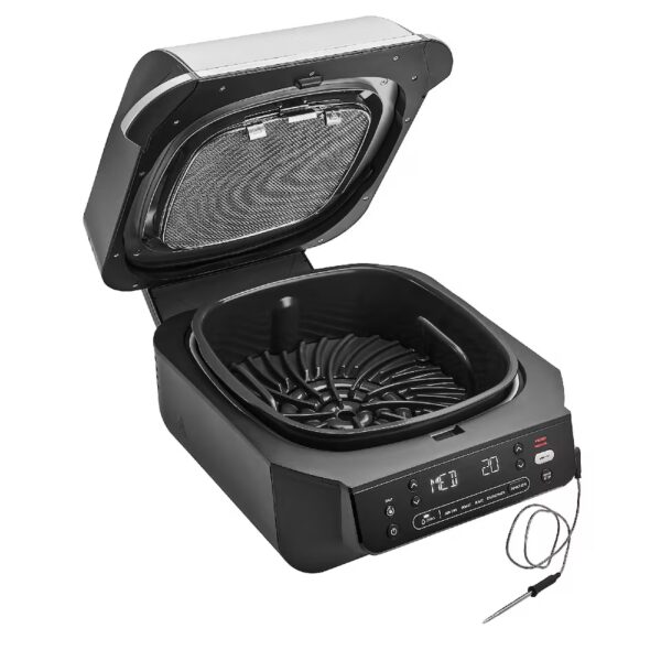 Вграденият цифров термометър следи температурата на месото в реално време и показва кога храната е готова. Ненадминатото удобство се допълва от лесната поддръжка – всички основни компоненти, включително тенджерата, грил плочата и кошницата за хрупкавост, са с незалепващо керамично покритие без PTFE и PFOA и могат да се мият в съдомиялна машина.