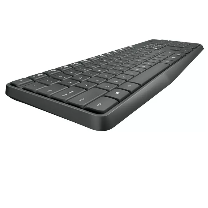 Logitech MK235 предлага класическа клавиатура с пълен размер, която не изисква време за привикване. Тя осигурява комфорт и интуитивност още от първото използване, с нископрофилни клавиши, подходящи за бързо и тихо писане. Комплектът включва и ергономична мишка, която гарантира плавна и точна навигация при ежедневна работа.
