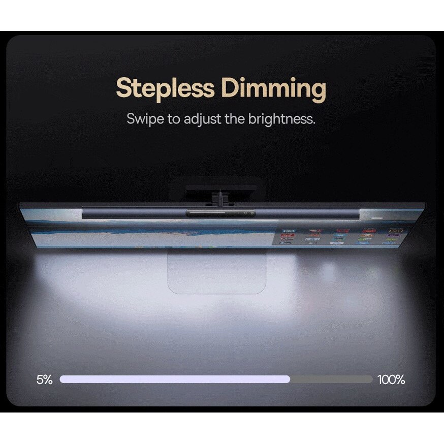 С Baseus i-Wok 3 лесно адаптирате осветлението към различни ситуации. Чрез леко плъзгане на пръста по повърхността на лампата можете прецизно да регулирате яркостта – от силна дневна светлина за работа до мека вечерна за почивка.