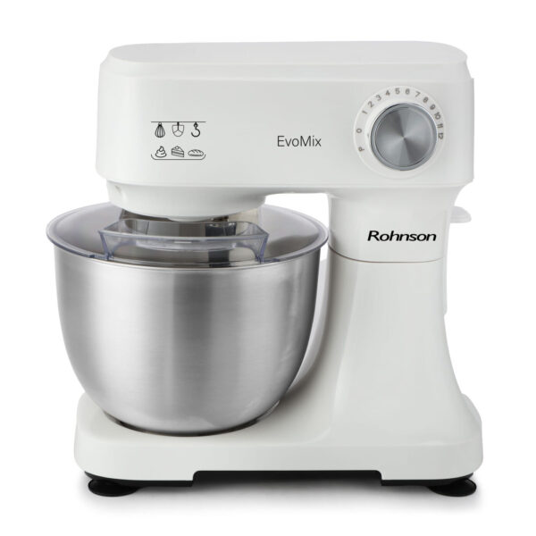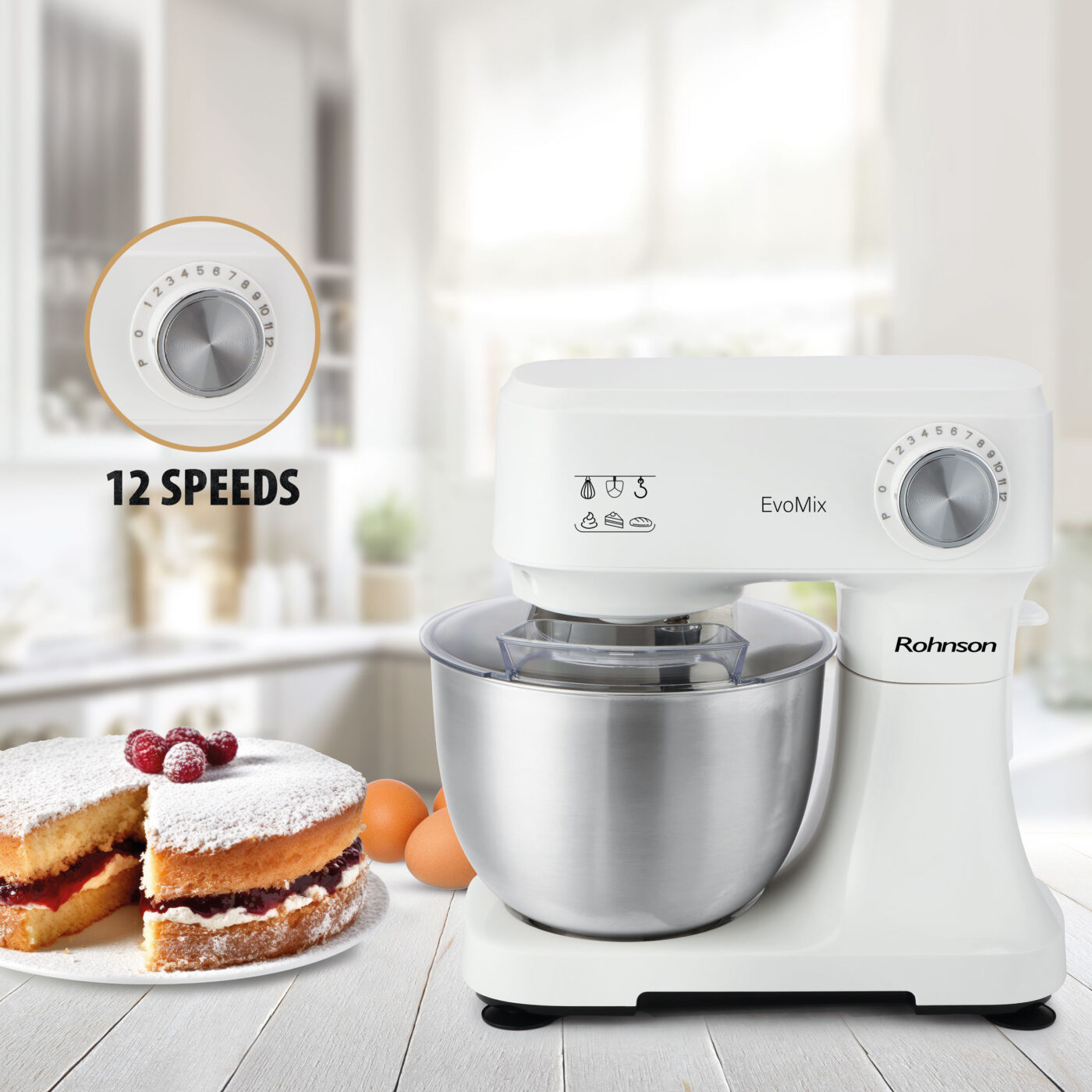 Rohnson R-5551 е мощен миксер с 12 скорости, планетарно смесване и голяма 3.5L купа, подходящ за всякакви рецепти. Уредът идва с три приставки и удобен капак, който позволява добавяне на продукти по време на работа.