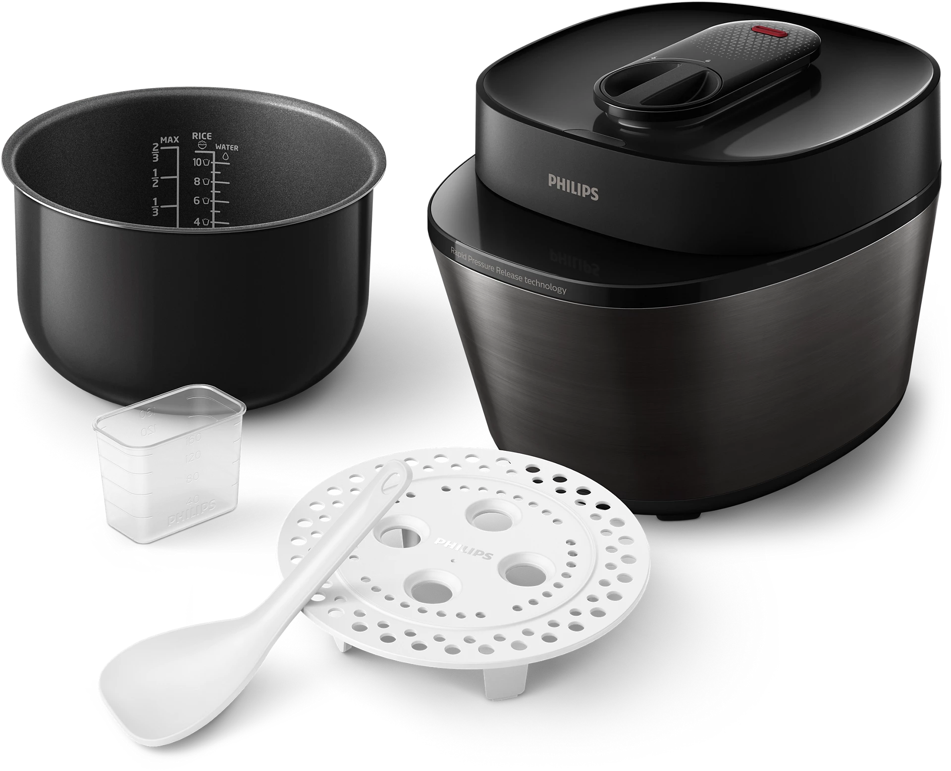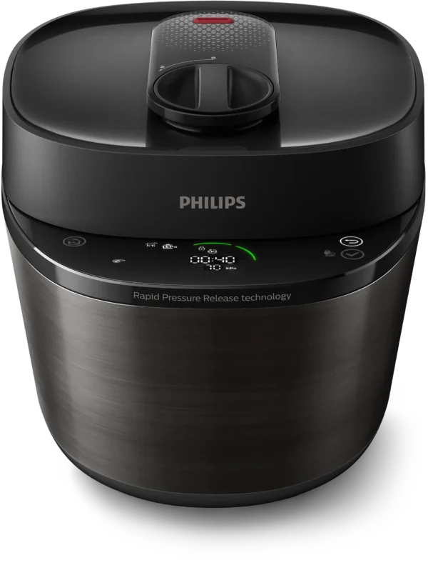 Мултикукърът Philips HD2151/40 позволява приготвяне на вкусни ястия за около 30 минути благодарение на технологията за бързо освобождаване на налягането, която намалява времето за готвене с до 50% в сравнение с традиционния котлон. Предварително зададените програми и системата за контрол на вкуса гарантират оптимални резултати всеки път.