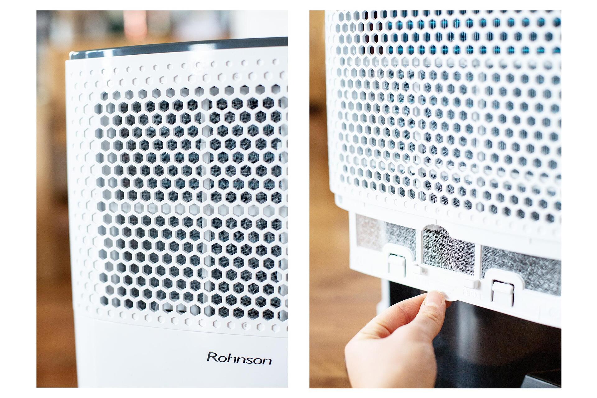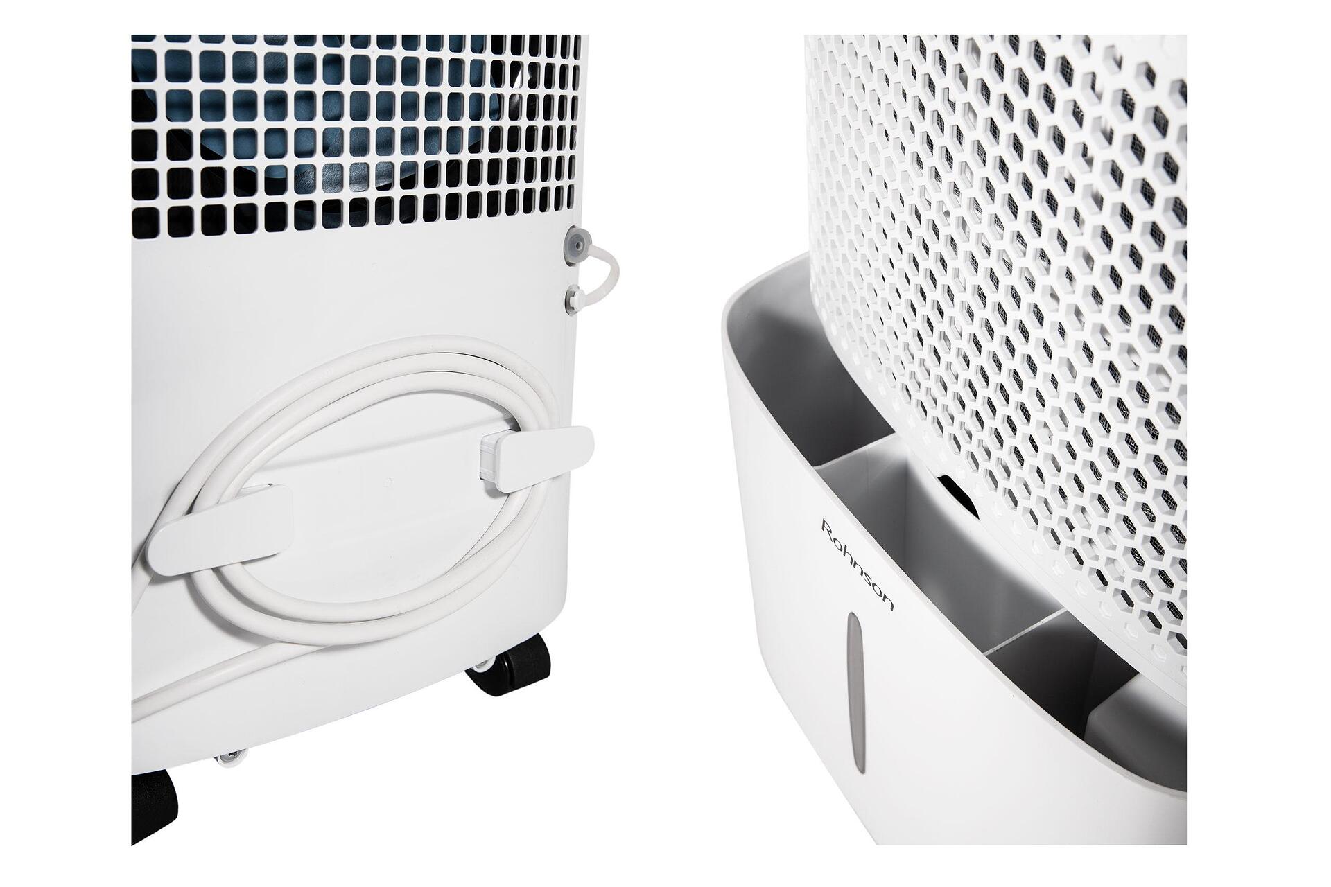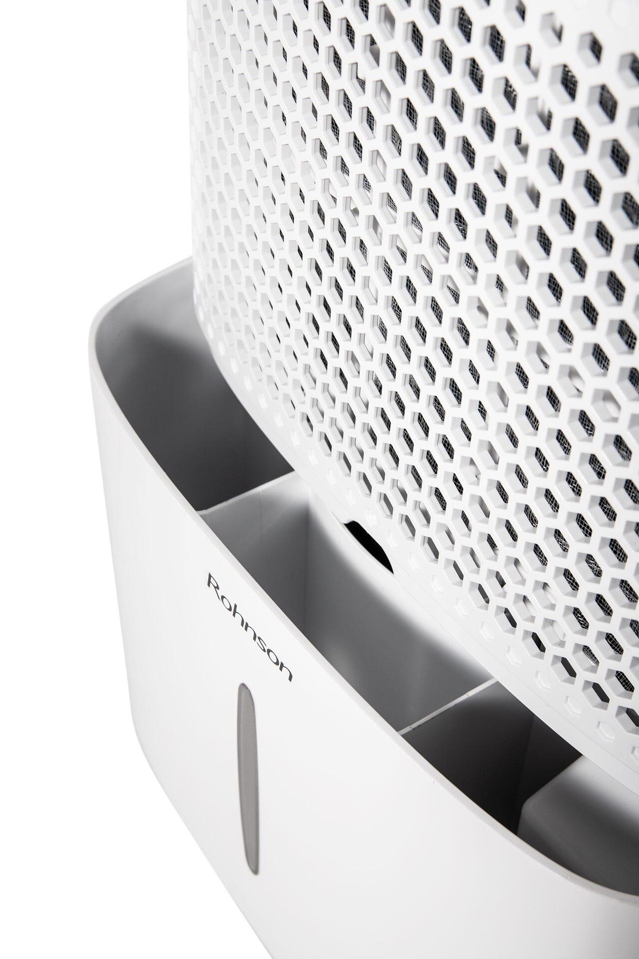Rohnson R-9610 е обезвлажнител за помещения до 45 кв.м с капацитет на изсушаване 10 литра на ден, тиха работа и електронно управление на влажността. Моделът предлага 2-литров резервоар, йонизация, таймер, постоянен дренаж и защити за по-удобна и сигурна употреба.