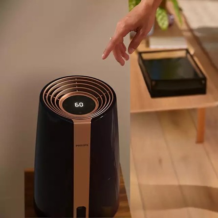 Philips 3000 Series предлага три нива на влажност – 40%, 50% и 60%, както и три скорости на вентилатора с максимално овлажняване от 300 ml/h. Устройството е подходящо за по-големи стаи до 45 м², като осигурява оптимален комфорт.