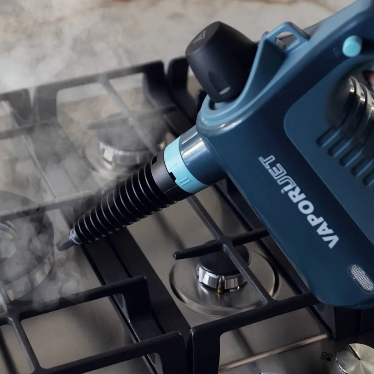 Vaporì Jet загрява бързо и е готов за употреба за около 3 минути, което го прави удобен за ежедневни задачи и спешно почистване. С до 15 минути непрекъсната пара можете да обработите няколко зони наведнъж, без постоянно прекъсване.