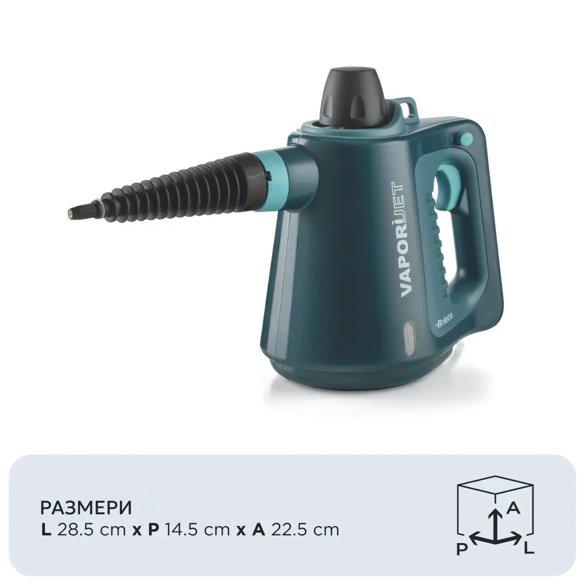 Ariete Vaporì Jet е практичен ръчен парочистач, създаден за бързо и ефективно почистване на различни зони у дома. Благодарение на силната струя пара уредът достига до труднодостъпни места и помага за отстраняване на замърсявания, мазнини и натрупвания без нужда от агресивни химически препарати.