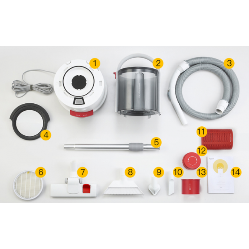 В комплекта са включени няколко приставки, създадени да улеснят почистването във всеки ъгъл на дома. Плоската четка е идеална за мокри подове и разливи, стандартната почиства килими и твърди настилки, а многофункционалната достига до тесни пространства като дивани, клавиатури и ъгли. Допълнителната ъглова четка осигурява прецизно събиране на прах от чувствителни повърхности.