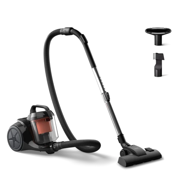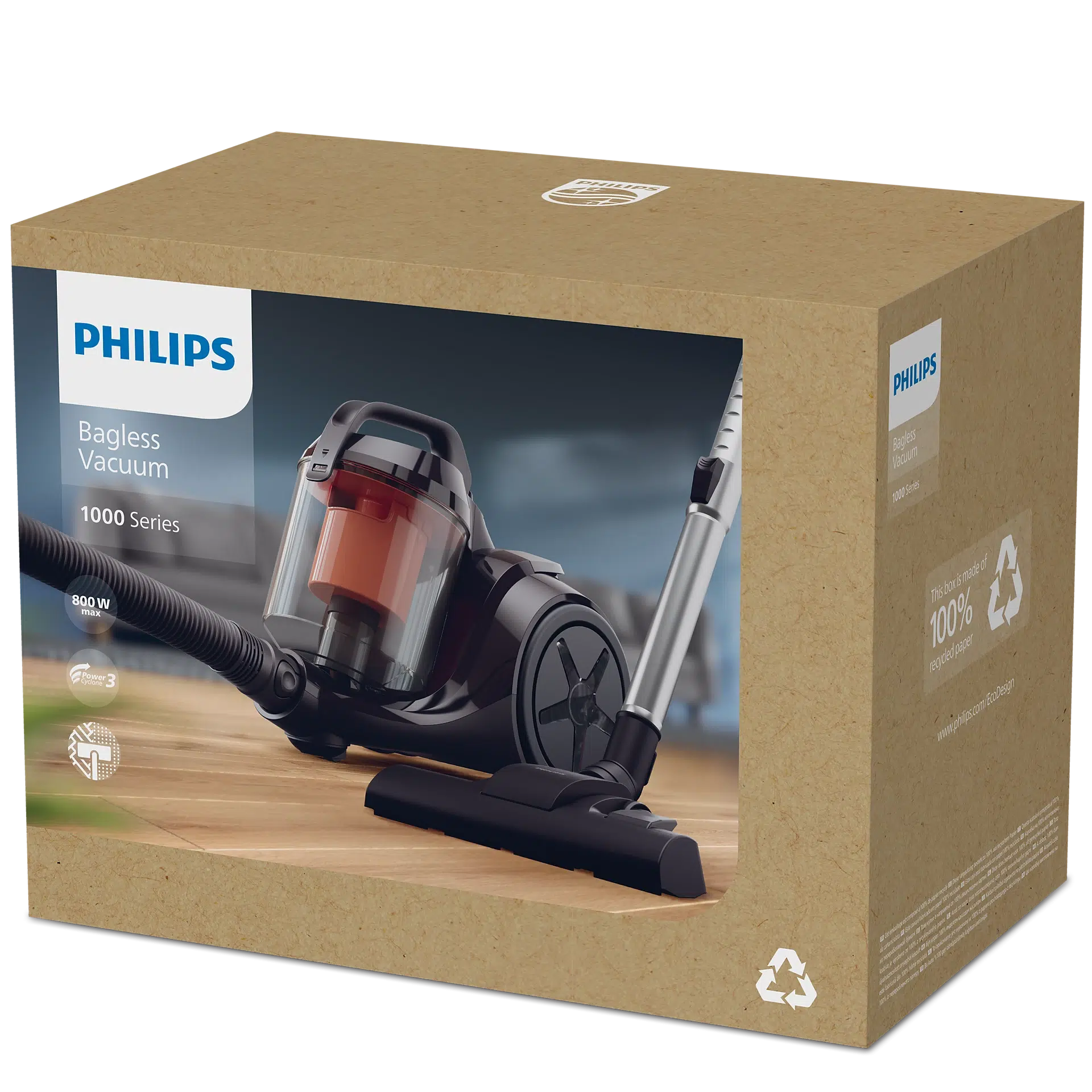 Прахосмукачката Philips с мощен 800 W мотор и технология PowerCyclone 3 осигурява силно засмукване и дълготрайна ефективност. Компактният дизайн без торбичка, многофункционалните накрайници и трислойната филтрация я правят практично и надеждно решение за чист дом.