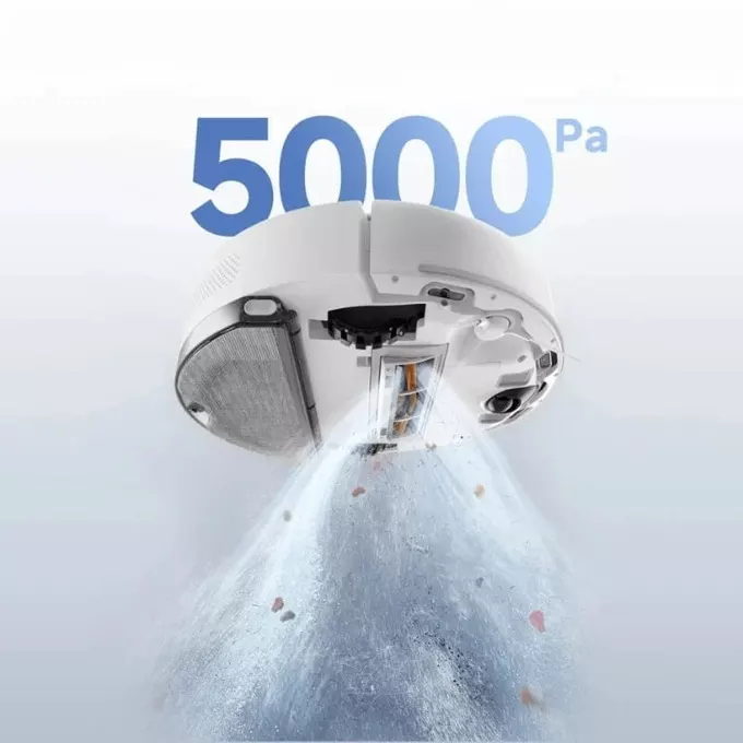 Смукателната мощност достига 5000Pa, което му позволява да събира прах, едри частици и животинска козина дори от килими. Четири режима осигуряват правилната сила за всеки тип под. Системата Smart Tank с резервоар от 260 ml предлага три нива на воден поток и равномерно разпределение, подходящо за деликатни повърхности като дърво или ламиниран паркет.