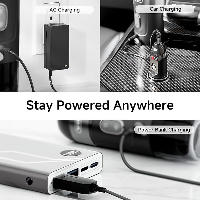 Работата с кафемашината е максимално опростена. Достатъчно е да поставите предпочитания тип кафе, да напълните резервоара с вода, да включите захранването и да натиснете бутона за стартиране. Машината може да работи с гореща или студена вода, като за затопляне се използва адаптер за променлив ток или зарядно за кола. При захранване чрез USB функцията за нагряване не е активна, но е възможно приготвяне с предварително загрята вода.