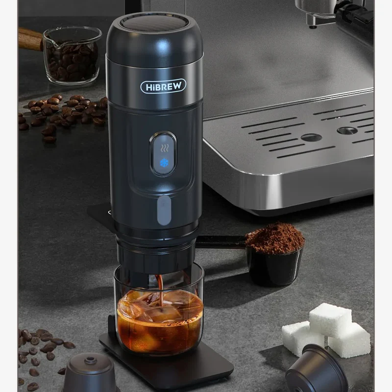 HiBREW H4A е премиум преносима кафемашина от ново поколение, създадена за онези, които не желаят да правят компромис с вкуса на кафето – независимо от мястото, на което се намират. Този компактен модел съчетава удобство и функционалност, като позволява приготвянето на кафе с мляно кафе или капсули от системите Nespresso и Dolce Gusto. Снабдена е с регулируема температура и време за екстракция, а налягането от 15 бара гарантира наситен и дълбок вкус.