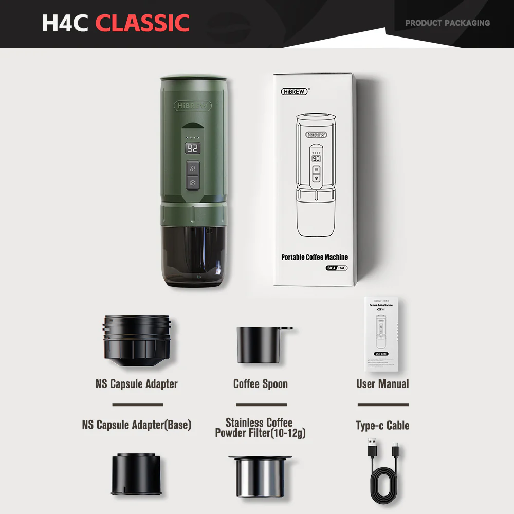 Тази преносима еспресо машина е създадена да доставя кафе с богата текстура и вкус, независимо къде се намирате. С 20 бара налягане, H4C извлича максимума от всяка капсула или мляно кафе, създавайки автентична крема, по-добра от повечето ръчни машини.