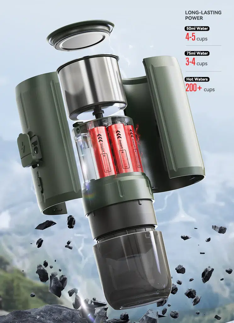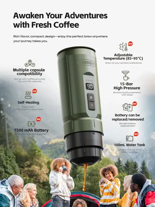 HiBREW H4C е перфектна за къмпинг, където може да се насладите на кафе без нужда от котлон или огън. Подходяща е и за преходи, работа отдалечено, дълги пътувания и пътешествия. Компактният ѝ дизайн я прави удобна за носене и използване навсякъде.