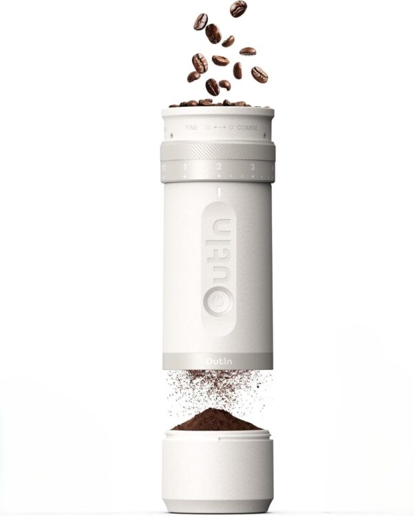 С тегло само 690 грама и безжичен компактен дизайн, OutIn Fino е създадена за гъвкавост и удобство. Лесно се носи и използва както у дома, така и навън – в парка, на къмпинг или в офиса. Отделимият контейнер за смляно кафе допълва практичността на устройството.