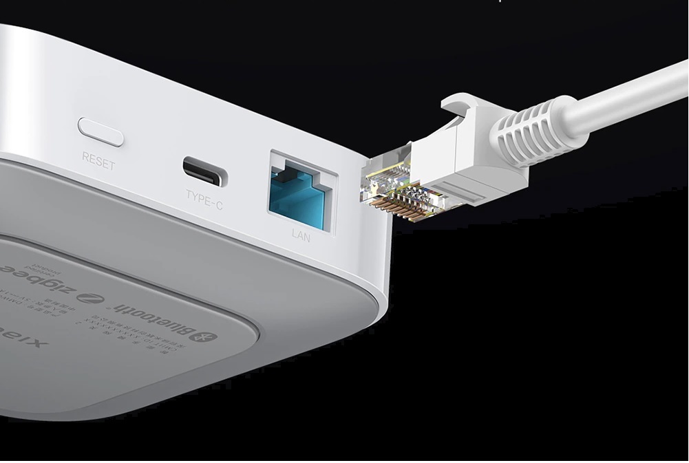 Освен безжична връзка, Xiaomi smart home hub 2 разполага и с RJ45 Ethernet порт за директна кабелна връзка към мрежата. Това осигурява по-надеждно предаване на данни и по-голяма стабилност при управление на автоматизации и дистанционен достъп.
