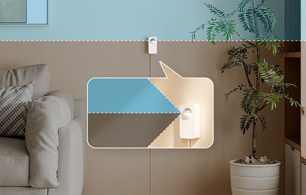 Комбинацията от PIR и радарна технология минимизира фалшивите аларми, предизвикани от домашни уреди или промени в осветлението. Вграденият светлинен сензор автоматично регулира осветлението според условията в помещението, като допринася за по-ефективна автоматизация.