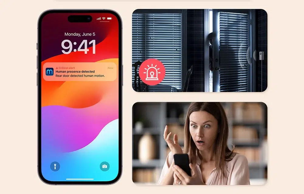 За разлика от камерите, Meross MS600 не записва видео или събира лична информация, което гарантира поверителност. Той реагира на дори най-малките движения без фалшиви аларми. При отсъствие може да задейства аларма и да изпрати известие на телефона ви при неоторизиран достъп.