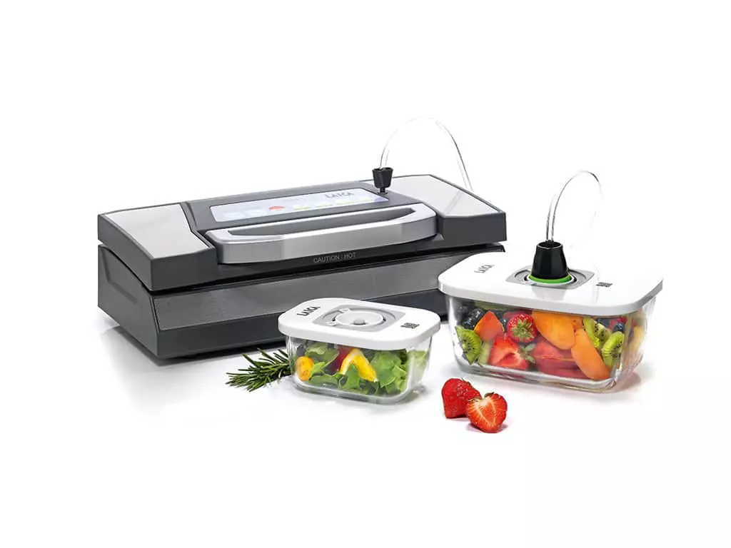 Комплектът е съвместим с определени вакуум машини Laica, което го прави отлично допълнение към вече изградена система за вакуумиране у дома. Така можете лесно да разширите възможностите за съхранение и да използвате контейнерите по максимално ефективен начин.