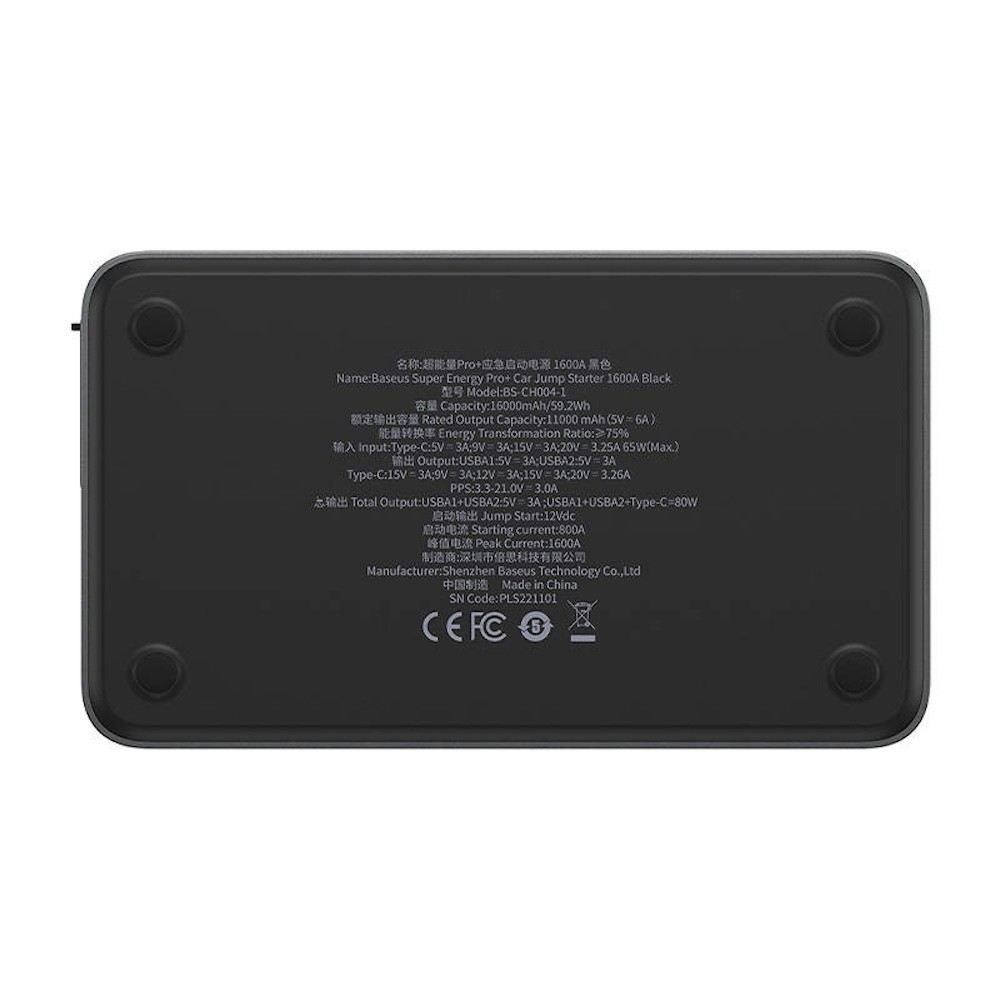 Стартерът за автомобил Baseus Super Energy PRO разполага с мощна батерия от 16 000 mAh, която осигурява многократни стартирания с едно зареждане. Благодарение на този капацитет, устройството е надежден избор за водачи, които искат да са подготвени за всякакви ситуации на пътя, независимо от сезона и разстоянието.