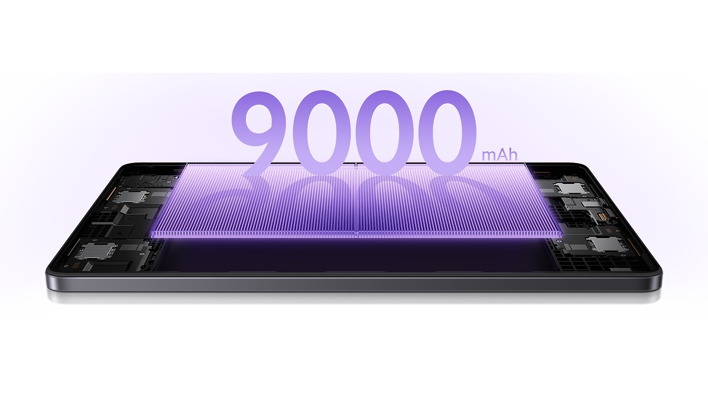 Таблетът е оборудван с 9000mAh батерия, която гарантира дълги часове работа без необходимост от презареждане. Той издържа до 86 дни в режим на готовност, 234 часа слушане на музика или 17 часа гледане на видео. Поддръжката на PD2.0/QC2.0 бързо зареждане го прави удобен за използване навсякъде.