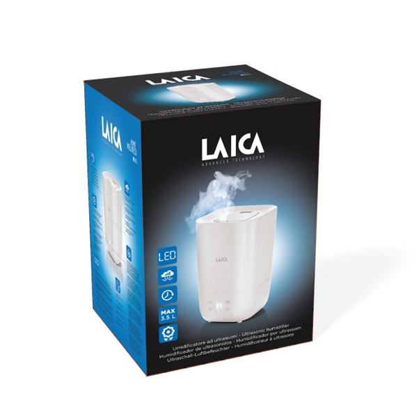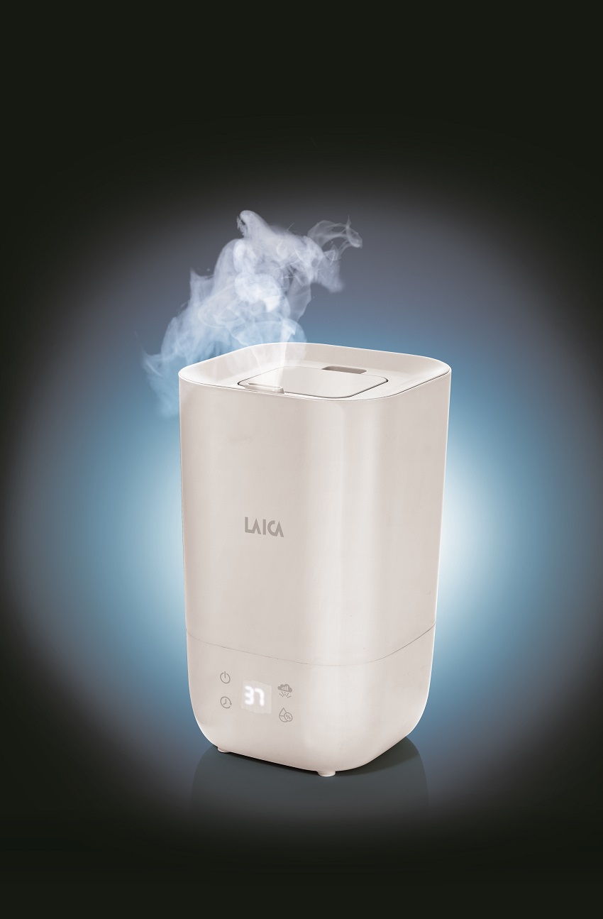 Laica HI3015 има вграден LED дисплей, който показва влажността в реално време, както и таймер с четири настройки за автоматично изключване. Автоматичният режим включва уреда, когато влажността спадне, и го изключва, когато желаната стойност бъде достигната. Зареждането става лесно чрез горния резервоар.