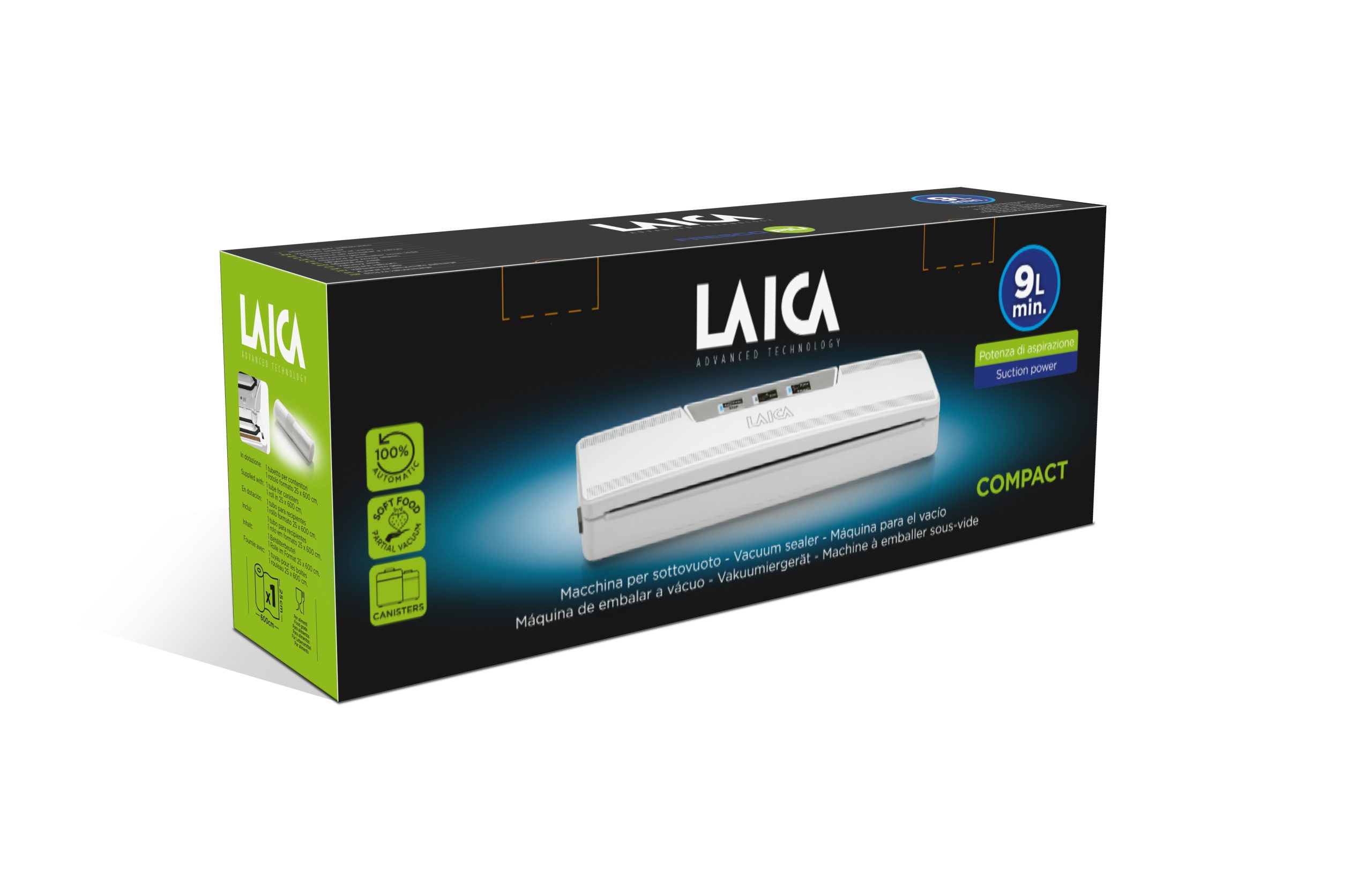 Машината за вакуумиране Laica VT3210 осигурява бързо и ефективно консервиране на храната в домашни условия. Храните се опаковат в херметически затворени пликове, което запазва пресните билки, зеленчуците и маринованото месо за по-дълго време. Всмукателната сила от -0.6 бара и скоростта на изсмукване от 9 литра в минута гарантират пълно и бързо вакуумиране с натискане на един бутон.